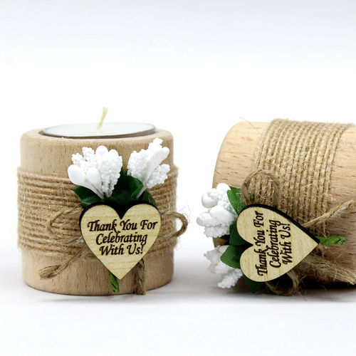 10 Pcs Shawly Sisters Handmade Wooden Wedding Favors Candle and