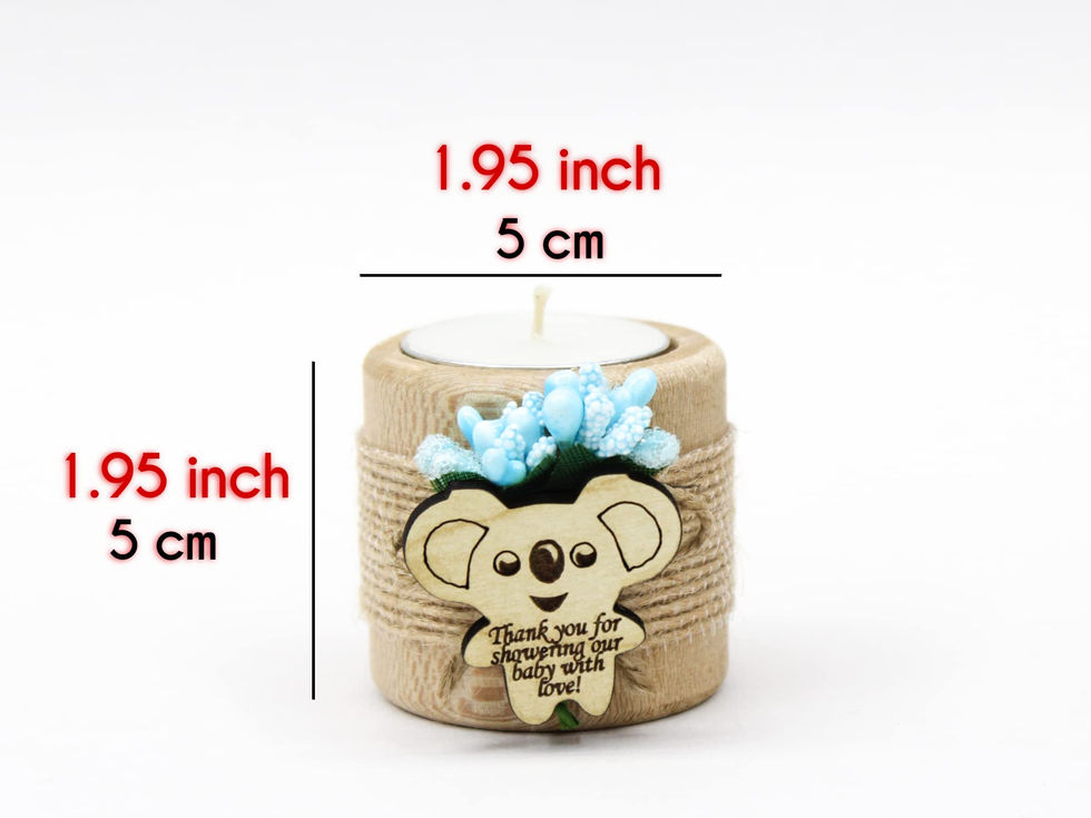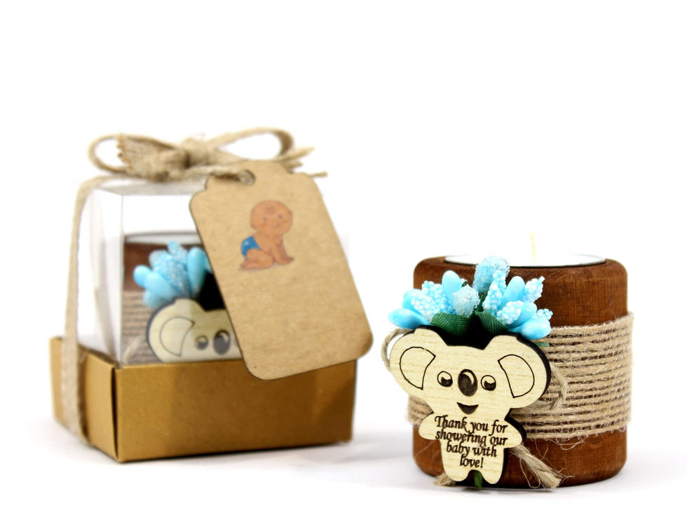 Rustic wood candle holders are perfect to your baby shower, newborn party decoration and table centerpieces. Great memorial favors for your newborn boys and girls, great choice for baby shower party or centerpiece favor Modern style wooden personalized candle holders are great decor for your birthday centerpieces, table decorations, home decorations & wood decor. Also a great for new baby gifts for baby shower gift. Candle holder dimensions are 1.95" inches Diameter and 1.95" inches height. The tealight is 1.35" inches diameter and 0.4" inches deep. Our products are made of wood and handmade. These tealight holders are decorated with artificial flowers, cylinder shaped tealight holder and tealight, included 2x jute rope, "Thank You for Showering Our Baby with Love" Wooden Koala tag, 2x Burlap, Special Gift Box, Kraft Tag. Clean and trustworthy tea light holder and safe packaging with gift box and also it has durable usage in every day life , simple tealight , ready for use. For Baby Shower Decorations: Shawly Sisters wood candle holders are perfect for baby shower and special occasions. You can use these wooden holders for newborn boys and girls as the keepsake favors.
