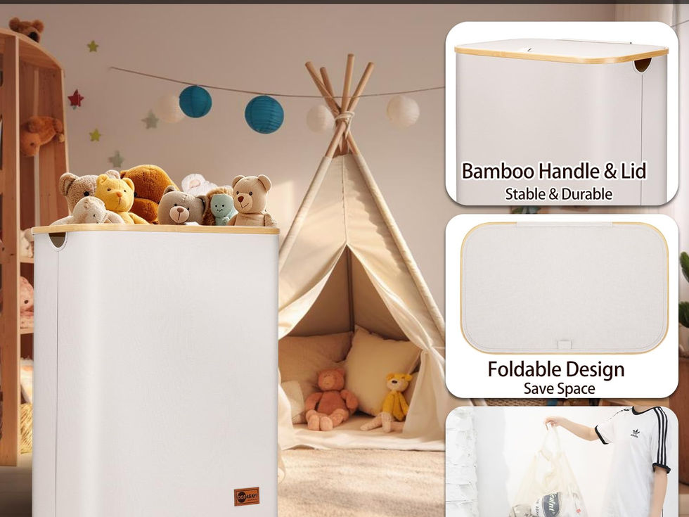 Innovative Laundry Room Organization: Streamline your laundry room organization with our 145L large clothes hamper, featuring a sophisticated bamboo handle. Perfect for bedrooms, bathrooms, and dorms, this stylish hamper with lid enhances any space's aesthetic appeal. Versatile Hamper with Lid: This double laundry hamper with lid offers a practical solution for sorting laundry in bedrooms and dorms. The two removable bags allow for easy separation of colors, ensuring efficient laundry room management and style. Durable Clothes Hamper Construction: Crafted with double-layer thick fabric, this sturdy laundry basket ensures long-lasting durability. Ideal for dirty clothes hampers in bathrooms and laundry rooms, it adds a touch of luxury to your laundry experience. Convenient Laundry Basket Design: Our collapsible laundry basket with lid is designed for seamless installation and storage. Available in multiple colors and capacities, this laundry basket organizer is perfect for customizing your bedroom or bathroom space while keeping it tidy. Efficient Laundry Hampers for Bedroom Aesthetic: Enhance your bedroom's aesthetic with this elegant double hamper. The removable laundry bags and sturdy bamboo handle make it a practical dirty clothes hamper, ensuring both functionality and style in your laundry room or dorm.