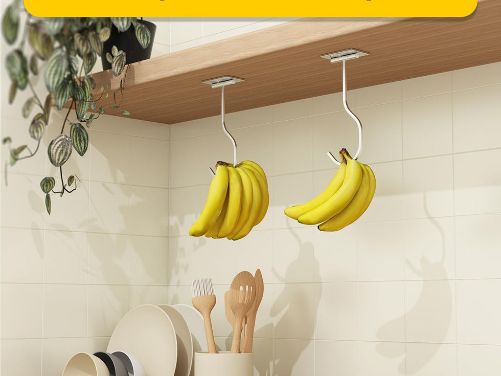 Folding Banana Holder Silver: Two magnets on the base let you fold the hook away when not in use, keeping your space tidy Easy to Install: Stick on in seconds with strong adhesive—no tools needed. Quick and hassle-free setup Can Hold 20 Bananas: Ultra-strong adhesive strips keep these banana hooks steady and heavy duty Keeps Bananas Fresh: Hang bananas for even ripening and fewer blemishes, keeping them fresh longer Save Counter Space: Hanging bananas frees up counter space, making your kitchen more organized
