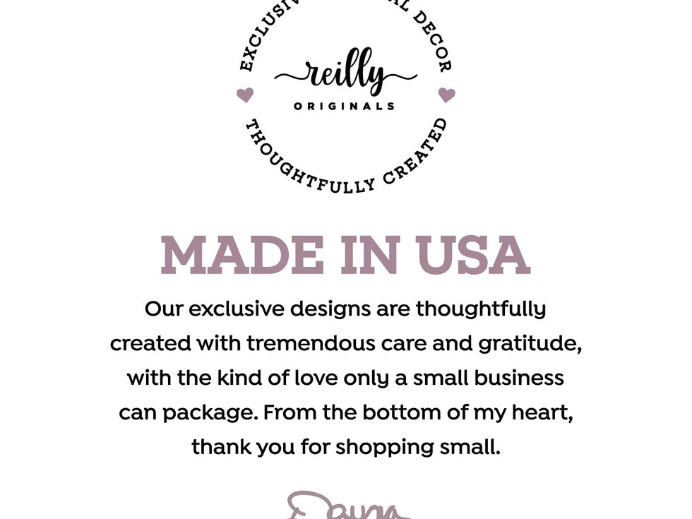 3 1/2" x 5” ~ Elegantly Sized, Please Measure Includes Adhesive ~ Mount, lean or place in a sign holder See Video for Our Beautiful, Premium Material! ~ (Elegant, glass-like look, yet break-resistant!) Click "Visit the Reilly Originals Store" (near the product name) for more great USA items! ~ Woman Owned Small Business ~ Exclusive & Truly Original Designs IMPORTANT: Do not hang on valuable wallpaper or other valuable/irreplaceable surfaces