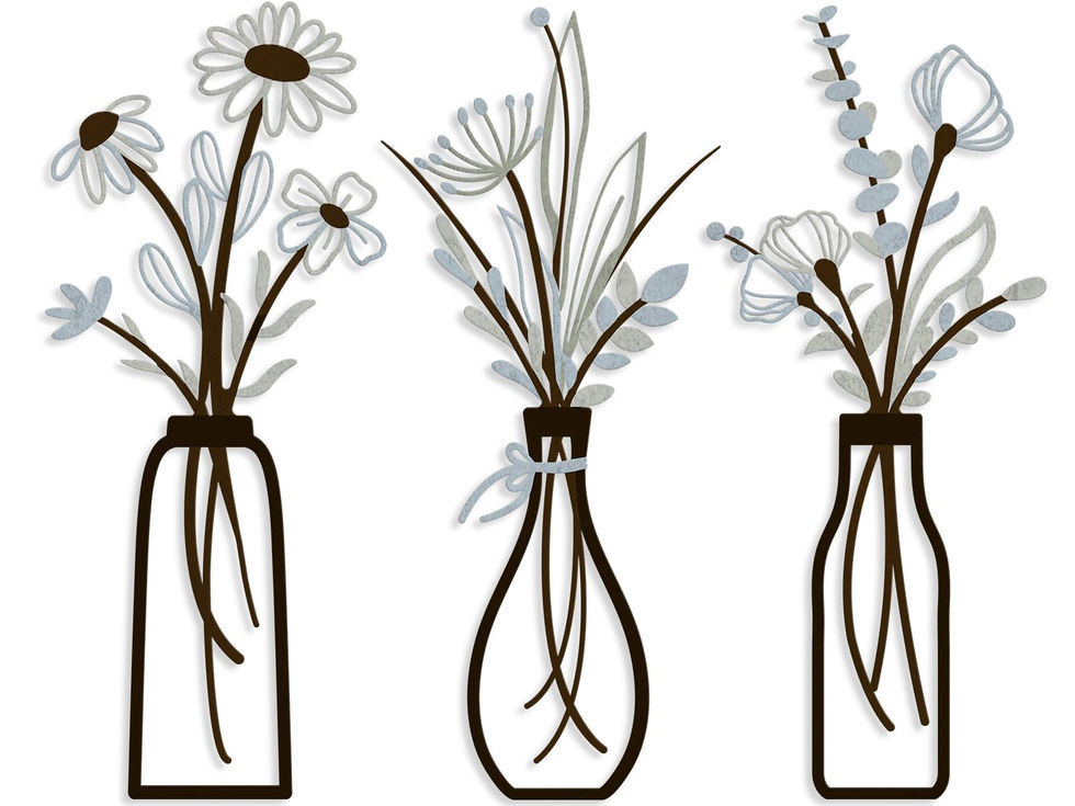 3 Pieces Metal Vase Flowers Wall Arts - Rustic Farmhouse Style Décor