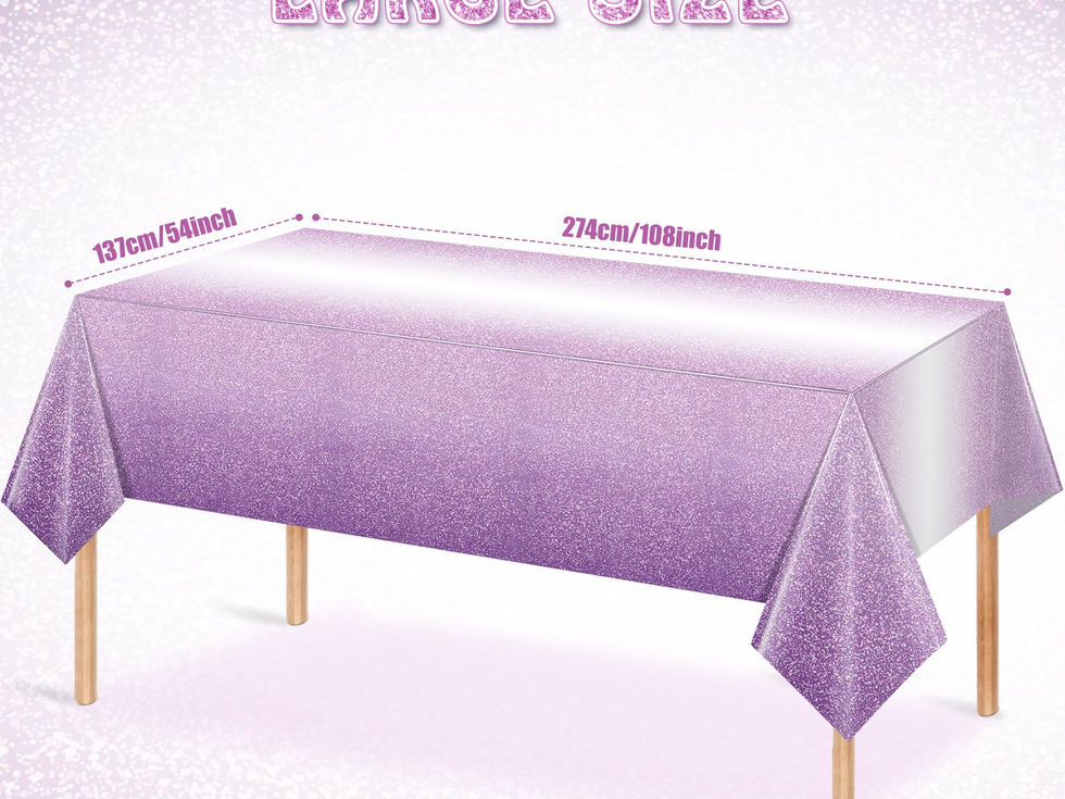 Package Includes: You'll receive 6 ombre purple plastic tablecloths measuring 54 x 108 inches, enough to cover most rectangular tables, making them perfect for both indoor and outdoor parties. These purple tablecloths will add a splash of color to your themed parties and create unforgettable memories. Gradient Purple Design: With a captivating gradient purple color and adorned with charming purple and white dots, our purple pastel tablecloth showcases a mesmerizing gradient design. This makes it an ideal centerpiece for your parties, adding a touch of elegance and sparkle to your event. NOTE: It is a shimmering effect created by alternating white dots and purple dots, but it is not a glitter tablecloth itself. Durable Material: Our purple table cloths for parties are made of thick, high-quality PE plastic material. It's reliable, lightweight, portable, waterproof, and stain-resistant, making it an excellent choice for your big event. Easy to Clean: Our light purple disposable tablecloths are waterproof and stain-resistant, which will keep your tables protected from splashes of juice, grease, and dirt. You don't have to worry about cleaning up the mess after the party, just toss them away and save time, allowing you to fully enjoy the party with your friends and family. Wide Applications: Our purple tablecloth party decorations aren't just limited to being used as tablecloths - they can also be used as party wallpaper, photo backdrops, and other party decorations to add more color to your party and create beautiful memories, suitable for birthdays, weddings, anniversaries, baby shower parties and more.