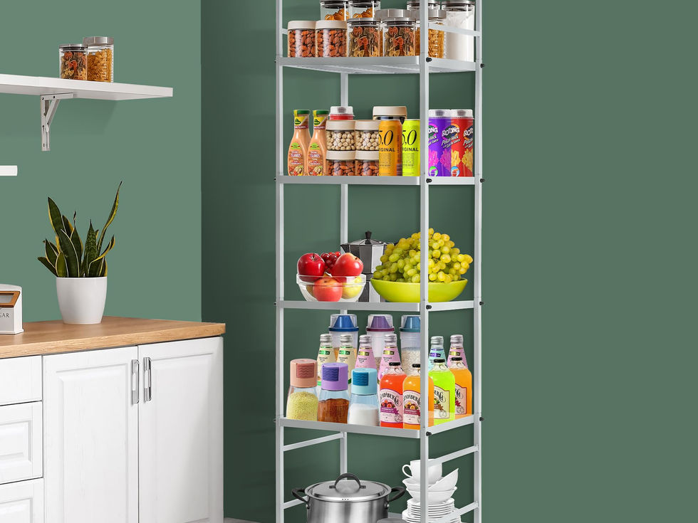 PREMIUM MATERIALS: Made from strength steel tube and taking the form of ''spider web'', total static max load weight is 600lbs, stable and sturdy The shelf is specially frosted paint surface for protecting it from any water, rust or corrosion. Not worry to place the shelving unit in your kitchen or bathroom, easy to wipe down clean SMART STORAGE: Wire shelves perfect size(16.9”Wx12.8”Dx62”H) makes it more suitable for narrow space or room corner to store odds and ends, such as kitchen, bathroom, balcony, garage, entryway or office EASY TO INSTALL: Super easily to install and enjoy fun of DIY, you only need to spend 15Min to install it. Adjustable feet can perfectly fits uneven ground SUPPORT: We provide the best solution within 24 hours. There are many parts in the package, Please feel free to contact us via Buyer Message if meet the case of missing parts and assembly.