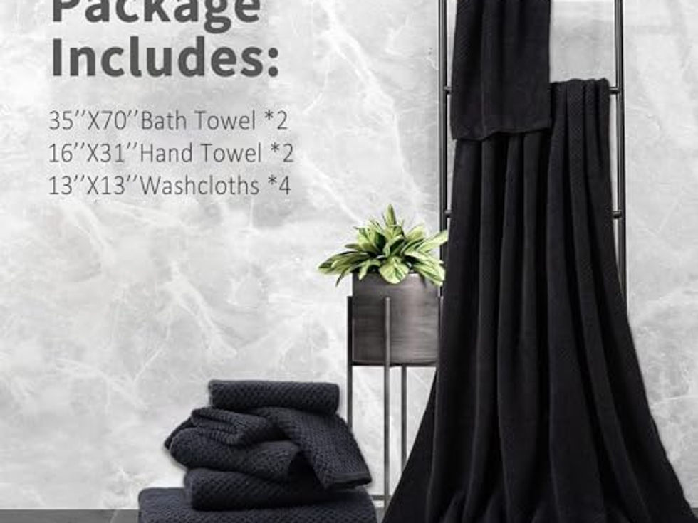 8 Piece Bathroom Towel Set Black |2 Oversized Large Bath Towels