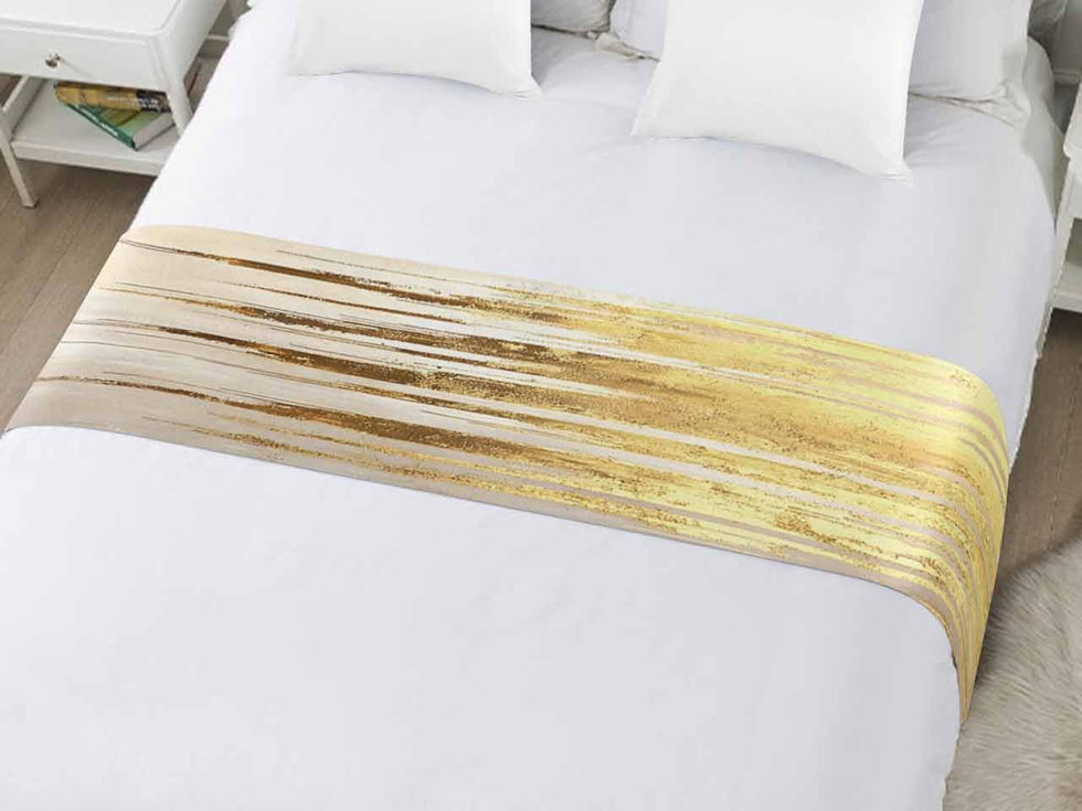 Abstract Gold Bed Runner Scarf Cal King Size,Modern Brush Luxury