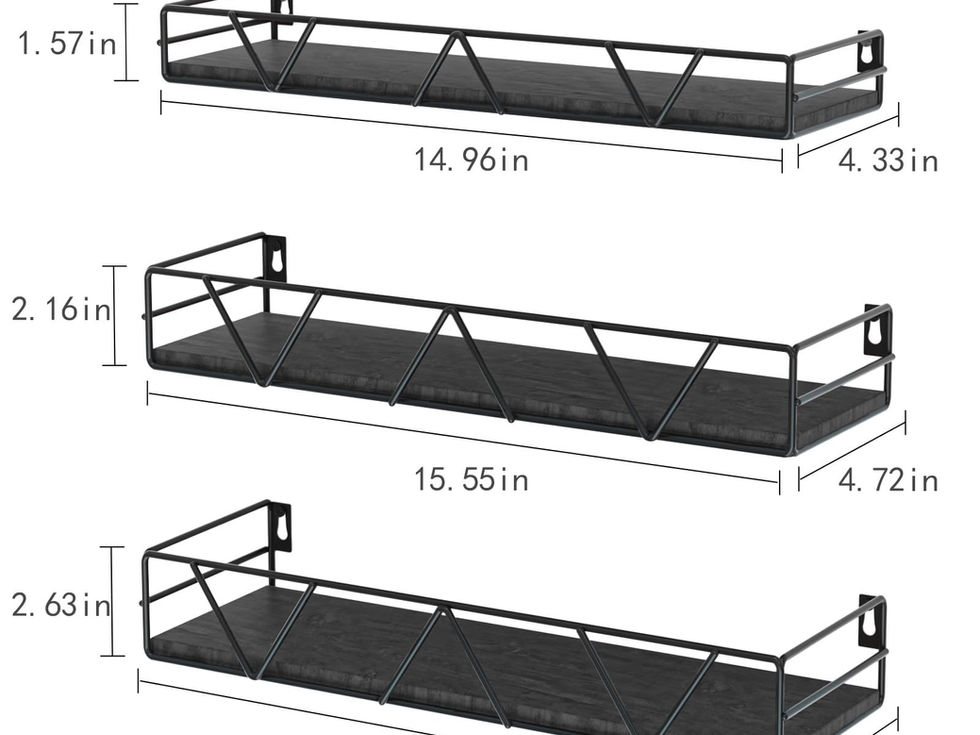 【Space Saver Wall Storage】This floating shelf for wall provide three different sizes of storage spaces, allowing you to maximize wall space and increase storage to keep the room neat and organized. A three-sided metal guardrail effectively prevents items from falling off. 【Superior Quality & Sturdy Construction】These wall shelves are made of durable solid wood and metal materials, featuring waterproof and moisture-proof properties. They are suitable for long-term use in wet environments such as bathrooms and kitchens, resistant to deformation and corrosion, and long-lasting. 【Multi-functional Storage Shelf】These shelves for room wall can make use of open wall space to help organize miscellaneous items in the living room, bedroom, kitchen, and bathroom. They are perfect for displaying and storing collectibles, small plants, photo frames, trophies, etc., offering both beauty and practicality. 【Sturdy and Easy to Assemble】This floating shelves bathroom is very sturdy and easy to install, requiring no complex assembly. It can be installed with just a few fixing points, making it convenient and quick, minimizing damage to the wall and ensuring stability. 【Commitment From Amaoot】The Amaoot service team is committed to providing customers with high-quality products and lifetime after-sale service. If you have any questions about our products, please contact us via email. We will respond to you within 24 hours.