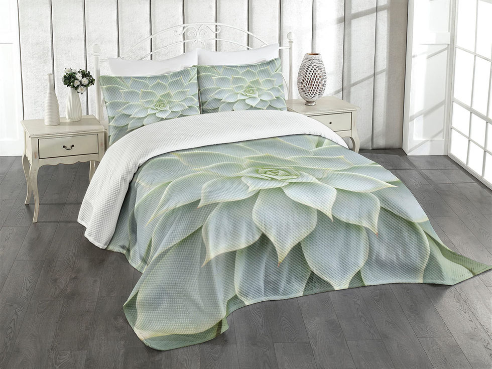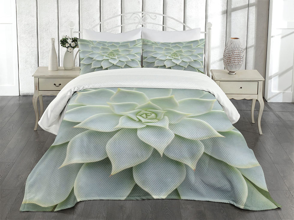 Ambesonne Cactus Bedspread Set, Cactus Plant Flower Close up View