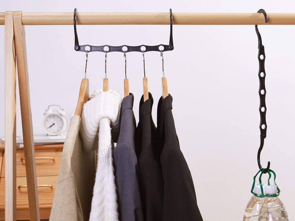 Magic Hangers: Size: 16x3.6 inches. 12 Pcs per set. Each magic hanger can hang 5 clothes and one set can hang up to 60 clothes. Make your closet neat and space saving. Hangers for closet organizer, small closet, dorm and apartment essentials Heavy Duty Space Saving Hangers: Strengthen hook bearing capacity so that AMKUFO magic hangers hook won't be stretched easily like other brand hangers do. Sturdier plastic magic hangers with no sharp edges or burrs will protect your value clothes. Thicken cross bar prevent it sagging. Durable AMKUFO hangers are great for heavy coats, pants, shirts and dresses Closet Space Saver Organizer: These magic hangers can be used horizontally to neat your closet or vertically to quadruple closet capacity. Ideal for small closets, wardrobe, apartments, dorms and limited space. With these cascading hangers, your clothes are organized well. Get rid of chaos and enjoy wrinkle free Smart Black Hanger Design: Each cascading hanger has 5 closed holes that prevent your coat hangers from falling off when hanging straight down, different from other metal space saving hangers with open slots. When hanging clothes all-across, the holes prevent hangers from sliding. Ideal for bedroom, closet storage and organization
