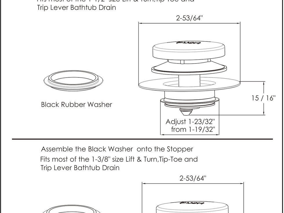 UGRADED TUB DRAIN STOPPER AND COVER: New design for easy installation and removing, so that you can clearing the hair and tangled messes easily. COMPATIBILITY: Artiwell Universal Tough-Toe Bath Drain Stopper and Cover have been tested by the plumber, which can be replaced 99% lift and turn, Tip Toe and trip lever Bathtub drains, Includes 2 types of o-rings for you to choose from to fit your existing 1-3/8” or 1-1/2” tub drains. EASY INSTALLATION: Installation easily without removing the old drain, so install Artiwell Universal Lift and Turn Bath Drain Stopper and Cover, you need’t professional plumber tools , plumber putty or plumber provide the support , you can save some costs. Tips:This is a new design bath drain stopper, unlike other regular bath drain stopper need to screw into, Which just need to drop into you bath drain shoe. EASY DÉCOR FOR YOUR BATHROOM: Completely covers your existing Drain without sacrificing style, Provide various colors for you to choose from to Match the color of your existing spout and face plated. HIGH QUALITY MATERIAL: Artiwell Updated Universal Lift and Turn Tough-Toe Bath tub Drain Stopper and cover coming with High Quality Solid Brass and tarnish-free finish , provides strength and reliable use.