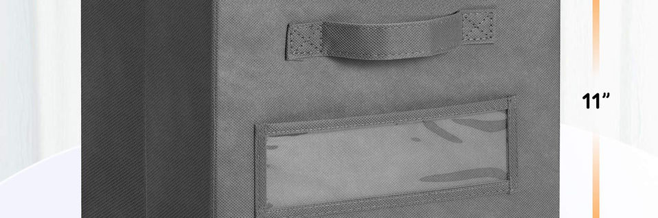 Solid Construction: 11 Inch Cube Storage Bin, Constructed from heavy cardboard and quality fabric storage cubes, these cube organizer bins are super sturdy and strong enough to hold clothes, linens, toys, towels, books, etc. Perfect Size: The dimensions of each unfolded storage cube are 10.6"L x 10.6"W x 11"H, which provides enough space to hold quite a few things. These cube storage bins are great for organizing your home and office. Convenient Label Cards: Each cube storage is equipped with transparent slot, you can put the label card into the slot to mark the contents in each cube storage baskets. It helps you categorize your belongings more efficiently, and it is easy to for you find what you need. Collapsible Storage Bins: There are 10 storage cubes, they are easily unfolded to store stuffs. You can simply take out the bottom insert and fold up the storage cube bins when not in use. The sturdy and functional item containers. Them useful and functional, with good material that holds up well over time. The included labels and marker make labeling easy. Many customers consider these storage containers excellent value for money, providing ample storage space for various items like kids' toys.