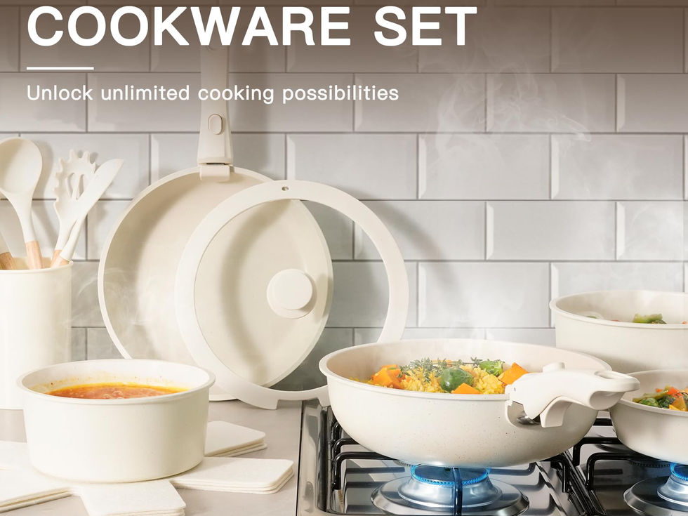 Astercook 21 Pcs Pots and Pans Set Non Stick, Ceramic Cookware Set