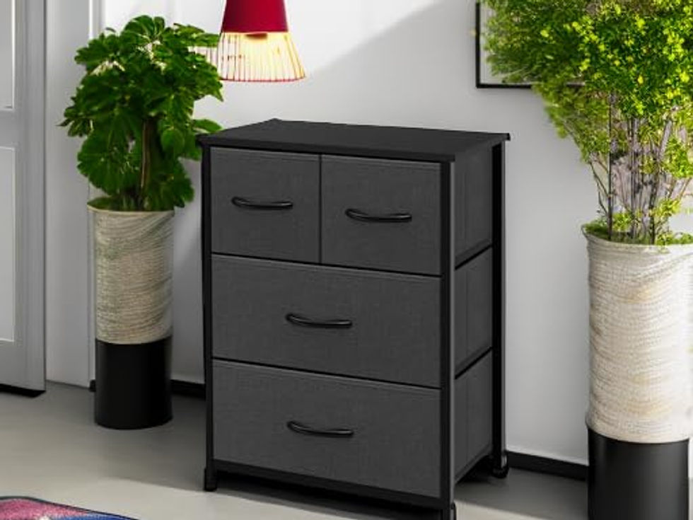 MULTIPURPOSE: The modern design storage dresser cabinet with various colors fit different space in your house: bedroom, living room, office, college dorm, closet and more. The water-proof wooden top is perfect to place alarm clock, phone, charger, eyeglasses, etc, keeping them in your reach. SPACIOUS STORAGE:Light weight design to easily fit into smaller spaces while still providing plenty of storage space. An easy pull handle to make opening and closing smooth. STURDY & DURABLE: This drawer organizer made of non-woven fabric, strong steel frame and durable water-resistant wooden top offer stable support. Four adjustable plastic feet to protect floor from scratches and are also designed for uneven ground. EASY ASSEMBLY: This dresser for bedroom can be assembled about 15 minutes with the clear instructions and tools included in the package. CUSTOMER SATISFACTION GUARANTEE — Feel free to email us in case you have any question about product and service and we will be happy to serve you with satisfactory reply in less than 24 hours!
