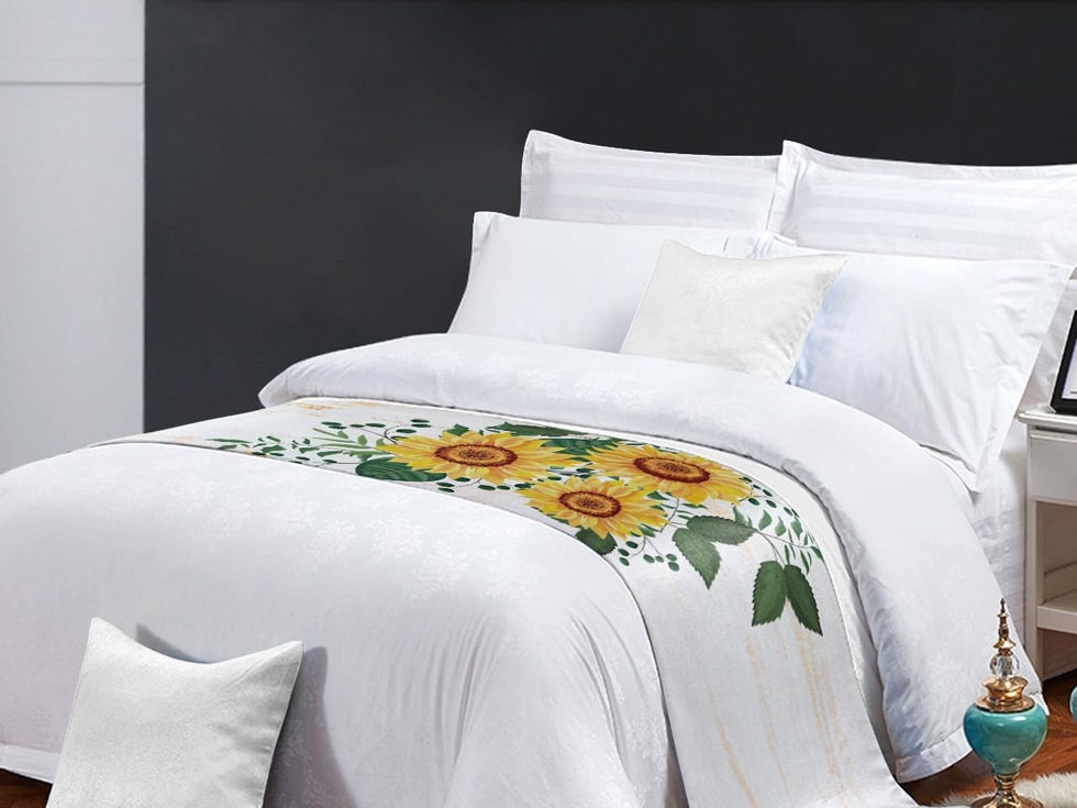 BABE MAPS Bed Runner for Twin Size Bed Sunflower Rustic Wooden