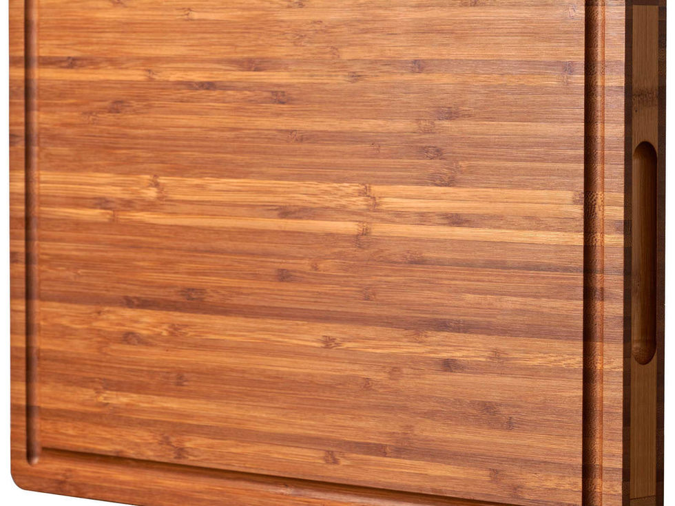 Strong and durable cutting board: Made of premium organic bamboo. 1" thick, resist to heavy-duty carving, chopping, could serve as a butcher block which lasts for years. Hidden side handles: Easy to hold, serve as a cheese board, charcuterie board in the party. Deep juice grooves catch meat juice or water. Keep your countertop dry and clean all the time. Pleasant Gift at Any Occasion: A gift that to be used everyday, nothing beats this. Suitable for any occasion such as father’s day, mother’s day, birthday, anniversary, Christmas, etc. Gift it to a friend or a family member for housewarming. Easy to clean: Handwash under running water. Do not place in a dishwasher. Always store it in a cool dry place.