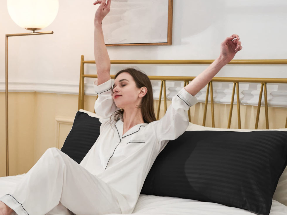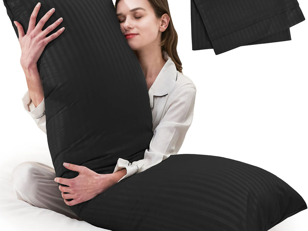✅Note: The pillowcase is rolled inside. please make the insert fluffy and put it inside the pillowcase. What you can get: 1 body pillow insert and 1 black satin stripe pattern pillow covers 20x54 inches(Envelope Closure Design). Luxury & Long Body Pillow: Our body pillow uses a new type of 7D microfiber filling with viscoelasticity, Never Go Flat. It’s soft,of medium density, and supportive, providing extra support and comfort for your hips, back, neck, and stomach. Therefore, it is highly suitable for expectant mothers, side sleepers, and individuals experiencing body pain. Premium Design: The modern classic stripe design lends a bright feeling to your room. Each pillow insert and pillow cover undergoes expert processing to ensure they are resistant to pilling, fading, and possess long-lasting strength. This adds a touch of finesse and luxury to your bedding collection. The envelope closure design facilitates easy installation and removal. If you prefer a firmer pillow, you have the option to purchase two pillow inserts and place them inside one pillowcase. Easy Care: Our large body pillow and pillowcase are made of high-quality materials that can withstand frequent washing. The body pillow is overfilled with whole piece 160 GSM microfiber, It is recommended to machine wash them on a cold cycle and tumble dry on low temperature.