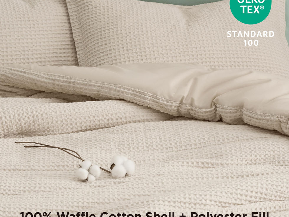 Natural Fabric: Crafted from premium, U.S.-standard cotton that is free of heavy metals, 100% pure, and pH balanced, offering natural and comfortable softness. A perfect choice for women Christmas gifts. Extra Cozy: The 100% cotton cover offers breathability and moisture-wicking, while the scientifically engineered ultra-fine polyester fill provides enhanced softness, comfort, and optimal warmth, making it perfect for Christmas gift ideas to enjoy cozy nights. Timeless Texture: The classic waffle weave adds dimension and sophistication to your space, making it a perfect Christmas gift for her. This design also enhances the cotton’s breathability and moisture-wicking for added comfort. Safe Material: This fluffy comforter is Standard 100 by OEKO-TEX certified for meeting the highest testing criteria for harmful chemicals, ensuring a safe and healthy choice for gifts for woman. Easy to Maintain: This comforter is easy to maintain. Simply machine wash in cold water on a gentle cycle and tumble dry low for a like-new restoration.