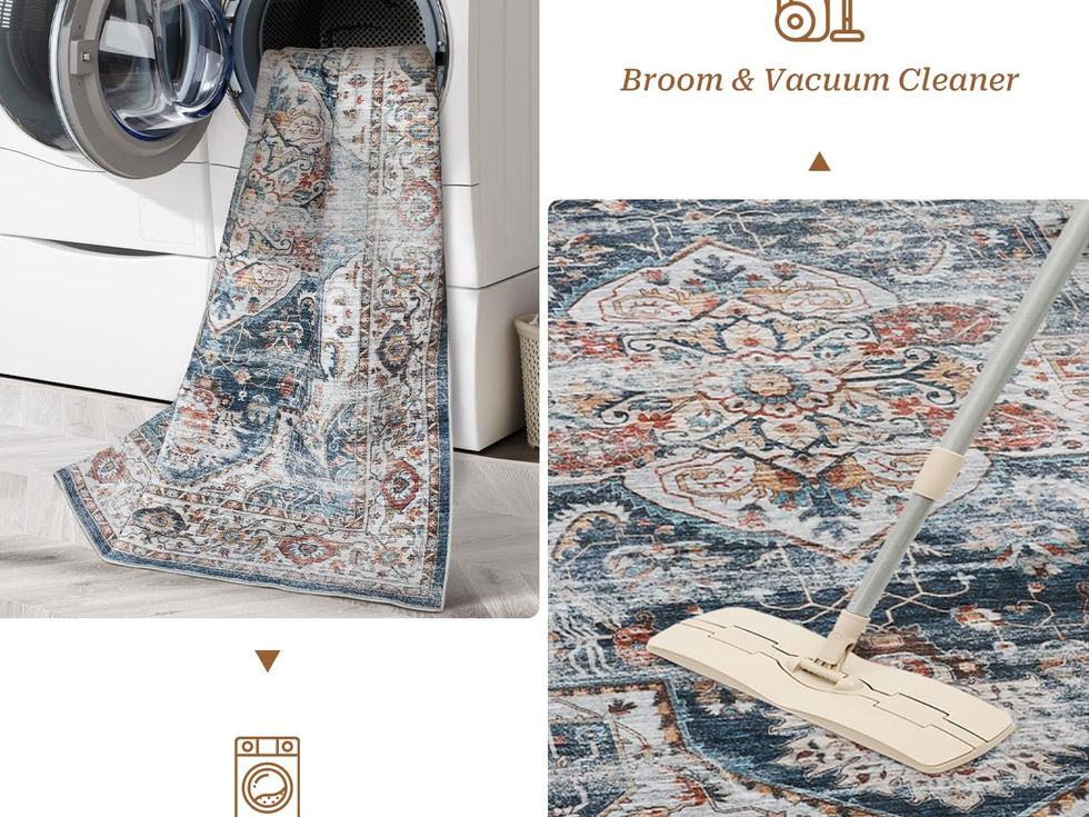 TIPS:When the area rugs arrive there will be some creases at the beginning, please don't worry, gently smooth them out,flatten them on the floor and walk around, the creases will disappear in a few days. 【Safety Non-Slip Design】Our washable area rugs are made of high quality non-slip TPR latex backing that effectively keeps the carpet in a stable position and prevents dangerous movement and slipping.One piece is enough,you don't need to buy additional non-slip carpet pads.This makes it safer for your children or pets to play during daily use, and you will keep the elderly living in your home safe. 【Stain Resistant Surface】 This washable rug is made of high quality spill and stain resistant microfiber and the area rug is treated with a stain resistant finish to ensure that liquids will not penetrate after spilled on the rug, including coffee, wine, milk or pet urine. The rug has a 0.24" super soft velvet surface ,that is very soft and comfortable for children to play and pets to move around. 【Widely Used Area Rug】 This 5x7 area rug is versatile, our rugs for living room, bedroom, dining room, kitchen and other high-traffic areas providing effortless style even,it can also be used as a decor in your study, hearth area, family room, guest room, home offic.This washable rug is the best choice for your home. 【Machine Washable Rug】 This machine washable rug is the best choice for high traffic areas with children and pets at home. This rug is machine washable and very easy to care.Use a broom or vacuum cleaner to remove dust or hair for daily care, if excess liquid remains or dirt on the surface of the rug and you want your rug to to be thoroughly clean, Machine wash with cold water on gentle cycle(not to add bleach),air dry or dry on air-only cycle with out heat.