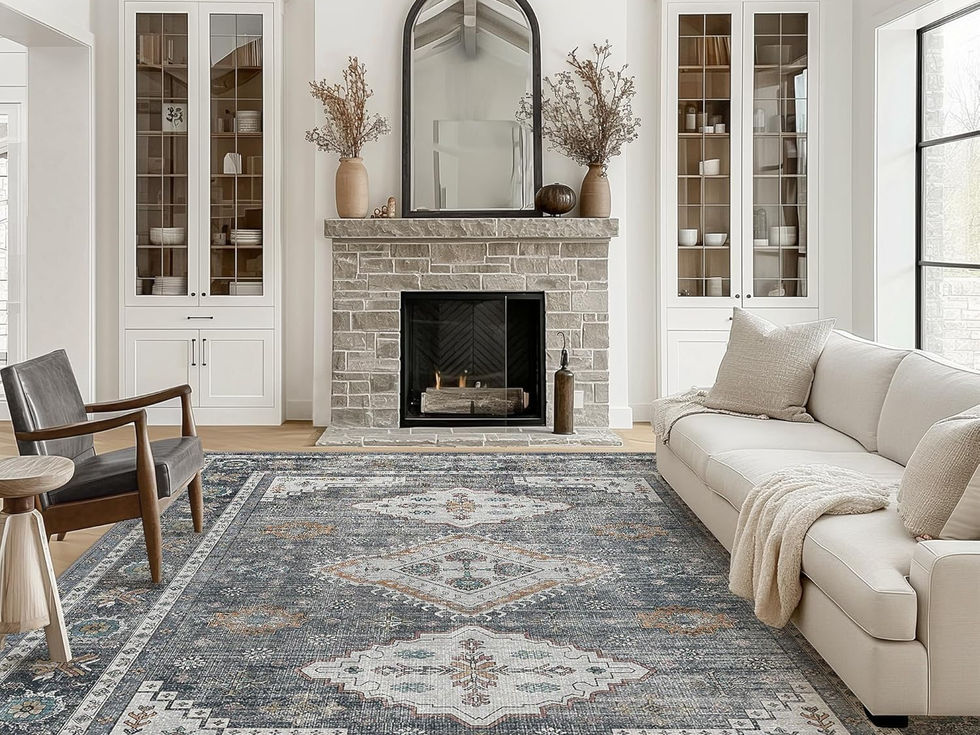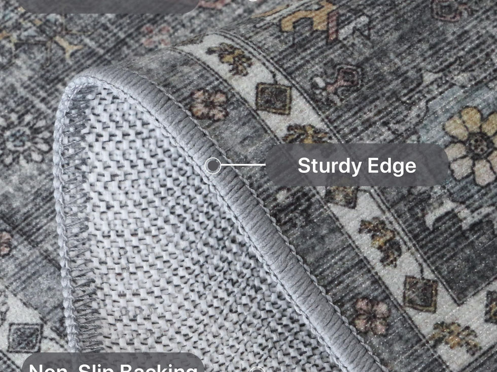 Machine Washable & Non-Slip: Appreciate the ease of care with our machine washable rug, engineered to withstand laundering without shedding, and colors remain lively and fade-resistant. Save your time and energy, The non slip rug features a low pile design with terrific non-slip backing, designed to fit conveniently for your home washing machine. High Traffic Area Rug: Our washable rug for bedroom has a outstanding durability, Is a practical choice for busy households or high-traffic areas. Machine made high density material and non-slip backing makes it low maintenance and perfect for for living rooms, bedroom, bedroom,entryways, front door, or offices, adding flair and functionality. Vintage Print Design: This indoor rug features a vintage design, The pattern is complex and ornate, It displays a symmetrical arrangement with a decorative motifs that include florals, geometric shapes. Overall, the rug projects timeless aesthetic that could complement both modern and traditional interiors.This type of throw rug would add a touch of classic elegance to any room. Easy Care & Family Friendly: Vacuum regularly to keep the area rugs clean on daily use. The area rug is machine washable, machine dry or air dry.This gray rug boasts a stain-resistant surface can keep the bottom always dry. Offering a stable and secure setting for children, pets, and seniors in their daily use Sturdy Edge: Machine made high density stitched edge makes the Vintage Boho rug very sturdy and can prevent from scratching, It can keep the edges close to the ground and will not lift or curl during daily cleaning with a vacuum cleaner.Pets' paws won't get snagged or get caught on edges causing them to scratch floors.Embrace enduring durability with our rubber backed rug.