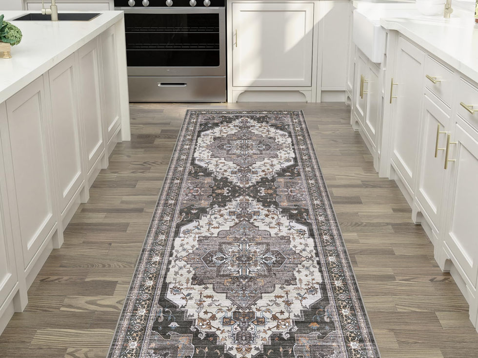 Gentle Comfort: Experience comfort with our classical 2x8 large dark gray rugs, boasting a 5mm low-pile design made from polyester. These rug are backed with rubber for easy cleaning and are densely woven to ensure durability, providing a comfortable surface without the need for additional padding. Its thickness will not get caught up in the door gap, making this vintage floral print rug insulates your floors and adding warmth to your living room, dining area, pantry, or bedroom. Long-Lasting Durability: Experience the lasting durability of our low-pile rugs for bedroom, masterfully designed for high-traffic spaces with a tightly woven, machine-made structure. Its sturdy edges help prevent fraying, and the dust-resistant, floral dark gray hue introduces a practical sophistication, Invest in style and durability. Non-Slip Rubber Backing: Our washable runner rug come equipped with a superior non-slip backing, ensuring the rug stays firmly in place, eliminating the risk of shifts or slips. This built-in non-slip quality removes the necessity for extra non-slip pads, providing a secure and more reliable environment for children, pets, and the elderly during everyday activities. Easy Care: Enjoy easy care with our machine washable area rug, designed to withstand washing without shedding or damage. Regular vacuuming and spot cleaning as needed keep carpet fresh, complemented by colors resistant to fading. The low pile height is perfectly suited for robotic vacuums, ensuring continuous durability and visual appeal. Classic Printed Design: This living area rug's design wonderfully captures a vintage charm. Its dark gray floral pattern contributes a sophisticated grace to your home decor. Showcasing a detailed tribal patterns motif, this bedroom area rug draws on traditional vintage influences. It introduces a hint of contemporary energy and coziness to your living space, while ensuring comfort.