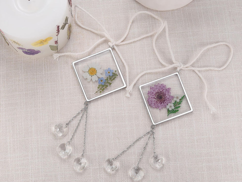 🌺This pressed flower sun catchers have real flowers and ferns that we picked and pressed on our farm in Alaska. These flowers have been dried and pressed into resin. They are a simple piece of real natural art. They are perfect whether you give them as a gift or keep them. 🌺The size of the pressed flower sun catcher is 5.1 x 2.4 Inch. I crafted with love and care, our suncatchers are designed to hang in your window or car, turning ordinary sunlight into a playful dance of colors. As the sun's rays pass through, they scatter enchanting rainbow dots and flecks, creating the most beautiful reflections! 🌺Birth Month Flower: This pendant contains the birth month flower daisy for April and forget-me-not which represents sincere yearning and respect. Daisy symbolizes Caring and Strong. For those whose birthdays are in April, you can use it as a birthday gift or give it to others. 🌺They are not just sun catchers but also works of art and decorations. The wild flowers of these sun catchers are very beautiful and clear. Just like a small work of art, it has a great decorative effect. It can be used to express your gratitude on Teacher's Day, Mother's Day, Children's Day, colleagues' resignation, weddings and other occasions. 🌺Our Promise: Should there be any dissatisfaction with your order, Rest Assured, we're here to Make Things Right. Whether it's a complete Refund or a Brand-new Replacement you seek, no questions asked.