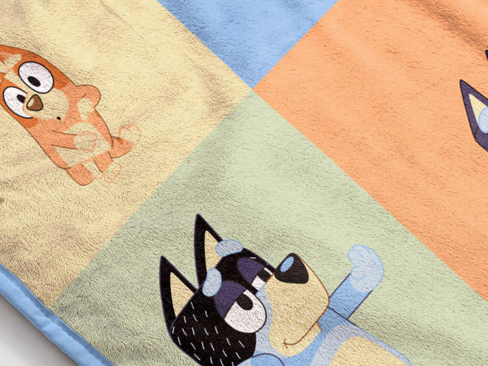PERFECT FIT & FUN DESIGN - Throw blanket measures 46 x 60 inches. Add a touch of decorative enchantment to your child's room with our fashionable and super soft throw. These fun and colorful designs that will excite any Bluey fan! HIGH QUALITY & EASY CARE - Keep your little one as cozy as can be! This super soft throw blanket is great for all seasons and allows for a comfortable night's sleep. To clean, machine wash cold. To dry, tumble dry on low. GREAT GIFT – Throw blanket is the perfect gift for the Bluey fan in your life. It is the perfect edition to any bedding collection! It rolls up for easy storage and travel, making it great to take to school, or on vacation. SHOP THE BLUEY COLLECTION - Complete your bedroom with our other Bluey products - Coordinating bedding and accessories available (sold separately). OUR FAMILY COMPANY - Our company is still small and family run. We take great pride in our products and our unsurpassed customer service. We know that our wonderful customers are the reason we are in business! We offer excellent quality, non-toxic products. With our coordinating Bluey accessories, you can mix and match our high-quality and unique boy’s comforter sets, girl’s comforter sets, kids sheet sets, or kids pillows.