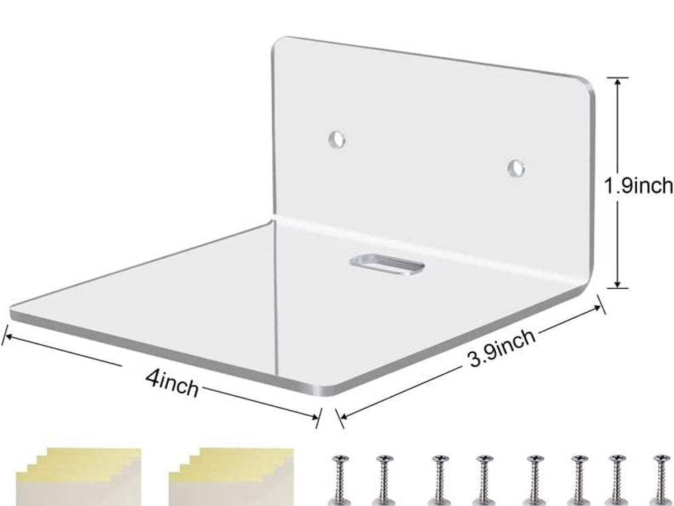 Small Wall Shelf Versatility:The acrylic shelves can help make full use of the empty wall, which is save much more space- great for clearing up the counter. Small Size:4 x 3.9 x 1.9 inches. Easy to install within a few minutes. Easy Installtion:First type: 8pack walls shelves come with mounting hardware, so you need to do is drill a hole for the anchor before installation. Second type:No damage and no holes in your walls, Each small shelf has Two pieces strong Adhesive Strips. Durable And Stylish:These Wall-Mounted Shelves are made of acrylic, it is durable and sturdy. Multifunction:These Wall-Mounted floating shelves are perfect for displaying your art, photos, children's books, toys collectibles, spices and so on,They can also be used as bathroom storage shelves.