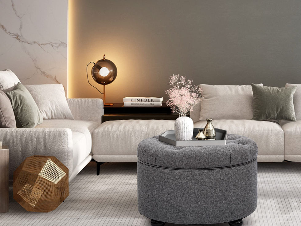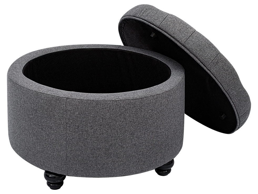 Featuring a lift-off lid with a cushioned top to enable easy access to the storage inside, our storage ottoman complements any living room furniture Offering a timeless style in our classic fabric, our large round storage ottoman is a fantastic addition to any room in your home and so great that you'll want to buy another one This ottoman comes with ample storage space for all of your pillows and blankets This large storage ottoman is not only easy to assemble and maintain but also can be spot-cleaned If you have any questions, our friendly customer-service team will be more than happy to help out