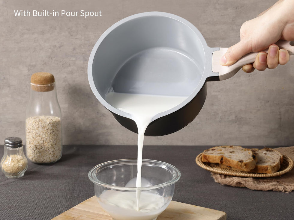 Natural Ceramic Non-stick Coating: Carote saucepan made from advanced 100% PFOA Free and non-toxic ceramic,stainless steel and aluminium,offering outstanding non-stick performance, ensuring easy cooking and effortless cleanup. Whether you're making oatmeal, soup, sauces, or gravies, nothing will stick to the pan. Heat Evenly and Quickly: Enlarged induction base delivers rapid and evenly heat. Higher sidewalls prevent overflowing and ensure safe cooking. Suit all stovetops. Enhanced Cooking Experience: Long-lasting tempered glass lid makes this induction saucepan convenient to see the cooking status and limits splashes on your stove. Woodgrain bakelite handle is comfortable to grip and stays cool while cooking. Easy to Clean: Our sauce pan features a non-stick coating that allows for easy and quick cleaning. Simply wipe off residues with a sponge and warm soapy water, and it is ready to use again. The rivetless design prevents food from getting stuck, making clean-up a breeze.