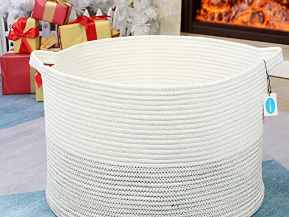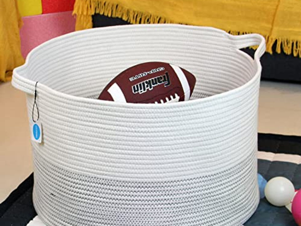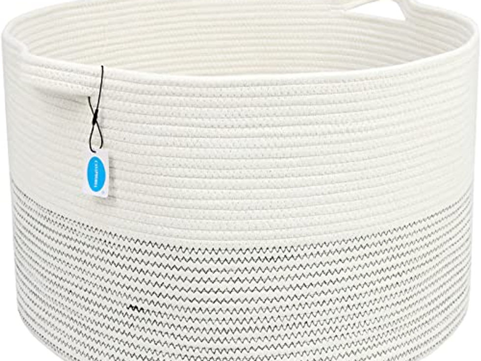 Soft Cotton Woven Thread Rope XXX Large size: 21.7" x 21.7" x 13.8", which perfect for throw pillows, blankets, Comforter or Cushions Versatility: This Extra Extra Extra large cotton storage container can hold, games, art/craft supplies, clothes and more. Keep in family room, or any room in the house Durability handles design, foldable, easy to move and take away, free awesome practical cotton large storage baskets. Soft yet sturdy enough to stand up on their own Important Things to Mention:The basket comes in folded. It is vacuum packed.It will return to its best shape if filling it up with towels or blankets. Fast removing the creases by ironing it.This is not machine-washable, but can be hand-washed or dry cleaned.