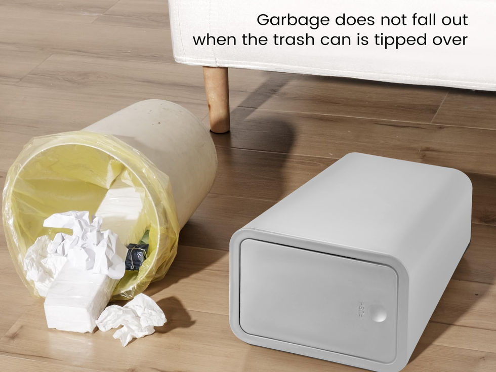 Effortless Press up Lid: Enjoy the convenience of our small trash can with its innovative pop up lid. Simply press the lid to open or close it, making disposal a breeze Space Saving Solution: Expertly designed to fit snugly into tight spaces and corners, our slim trash can enhances the aesthetics of your bathroom, living room, bedroom, or any room while taking up minimal space Odor Control: Say goodbye to unpleasant smells with our trash can's exceptional sealing ability. Keep your room's air fresh and clean, as the closed lid effectively contains odors. Plus, it's pet-proof, so your dogs can't get into it Long lasting & Easy to Clean: Constructed from quality and sturdy plastics, our trash can is built to last. The stylish matte finish not only adds a touch of elegance but also makes cleaning an easier task Contemporary Elegance: Enhance your modern-style room with our trash can's simple yet sophisticated design. It's an excellent present for your mother, family, or friends, adding both style and practicality to their living spaces