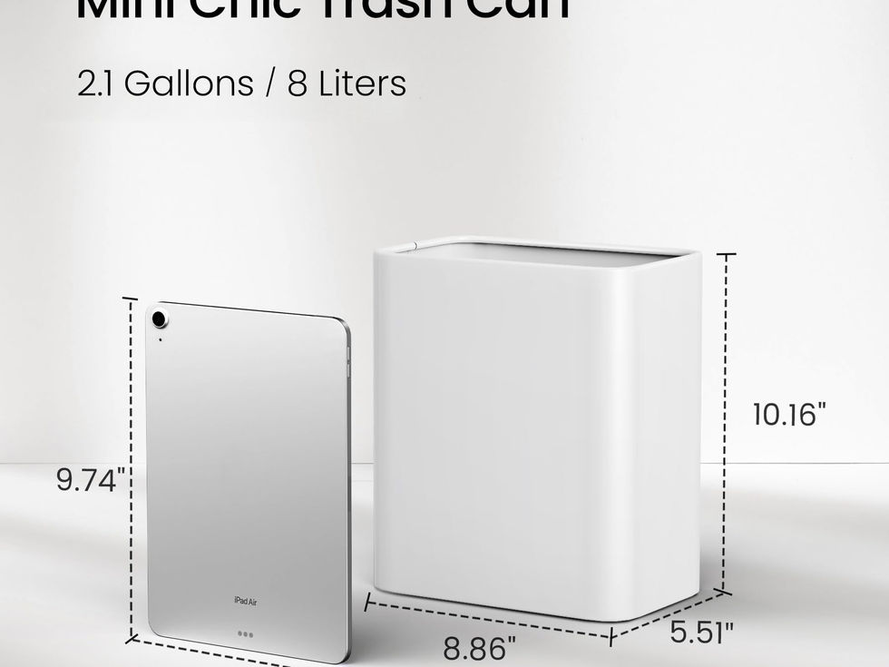 Compact Size for Tight Spaces: With dimensions of 8.86''L x 5.51''W x 10.16''H, this 2.1-gallon (8-liter) trash can is purposefully small, perfect for limited spaces where larger bins may not fit. Ideal for light use, it’s a discreet waste solution for bathrooms, under sinks, under desks, nside cabinets, and narrow areas, ensuring you make the most of every inch Anti Rust & Easy to Clean: Quality stainless steel with a sturdy finish prevents rusting. The dirt can be easily cleaned with just water or a cloth, keeping the metal garbage can looking new after prolonged usage Safe Use: Smooth rolled edges, no worry about damaging your hands or scratching the garbage bag when using No Lid Design: The open top with big horizontal diameter allows you to throw your waste effortlessly without touching the garbage can. Even if you throw waste from a distance, it can go into the garbage can unobstructed Minimalist Style Design: Our modern bathroom trash can adds a understated and elegant accent to every interior. The simple rectangular design combined with the matte surface, abandons the complex shape, brings a minimalist feel to your home