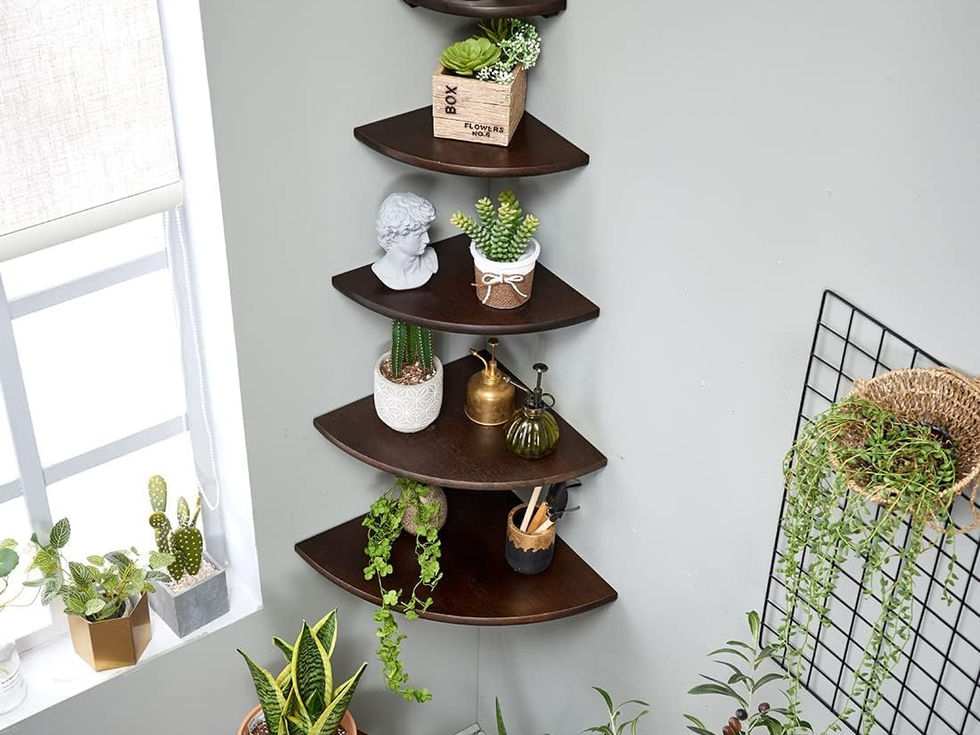 【100% Oak Wood Corner Shelf】Unlike most other shelves made of MDF material and cheap processing, these shelves are made of 100% premium solid oak wood, Professionally crafted, and painted with clear natural wood oil to protect from damage, each shelf reveals it's the unique character of knots and natural wood grain 【Must be 90-degree wall】Fit 90-degree surfaces, Cement walls, stickers walls, lime walls, white-washed walls, wood, and wooden doors. Fit for hard wood and solid walls, there are 5 sizes and 2 material colors optional for our shelves. Different Sizes to meet your different meets 【Efficient Corner Shelf Wall mounted】 fit any room corner, fill the bare wall corners, this shelf corner decor is great for displaying great for storing your paperback speakers, clay plant pots, lamps, knick-knacks, vases, and alarm clock,upgraded rear cut-out notch,cords can go through, a great way for cable management, hide all your messy cables for security cameras, monitors, or speakers 【Functional Corner Wall Shelf】floating corner shelf practical wall space saver, and very useful for adding extra storage space to store and reorganize small items in your bathroom, bedroom, living room, kitchen, and more, it is a nice way to clear up the clutter 【Easy to Assemble】come with all hardware and instructions, strong enough to hold the weight up to approximate 30 lbs when installed properly, you just need to follow the instructions steps and you can assemble it in minutes