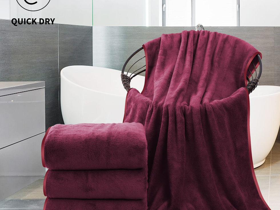SET OF 4- The set contains four premium bath towels measuring 27 by 54 inches each. These towels come in a variety of beautiful colors to complement with any home, dorm or hotel bathroom. PREMIUM QUALITY CONSTRUCTION - Don't worry about the lint falling off. Don't worry about fading.The plush microfiber towel set are strong and durable, extremely cost-effective in the long run. SILK DETAIL - The edge of the towel uses silk hemming. Silky and soft without rubbing the skin. Cosy Family User friendly Microfiber coral velvet Widely Used in Options- These quick dry towels are versatile plush fabric towel, perfect for you to take to the poolside, bathroom, beach, salon, spa or gyms. The set fulfills your basic bathroom drying needs. ULTRA SOFT - COMFORTABLE & SOFT - Highly absorbent, yet light-weighted. Gives the body a soft and delicate touch while absorbing the moisture. For personal care and beauty- such as hair turban, hair drying towel, sports towel, travel towel, bath towel bathrobe, bath wrapper. EASY CARE - Microfiber towels are machine washable and tumble dry on low heat. Anti-shrinkage, anti-wrinkle and lint-free. Please do not use bleach and do not iron.