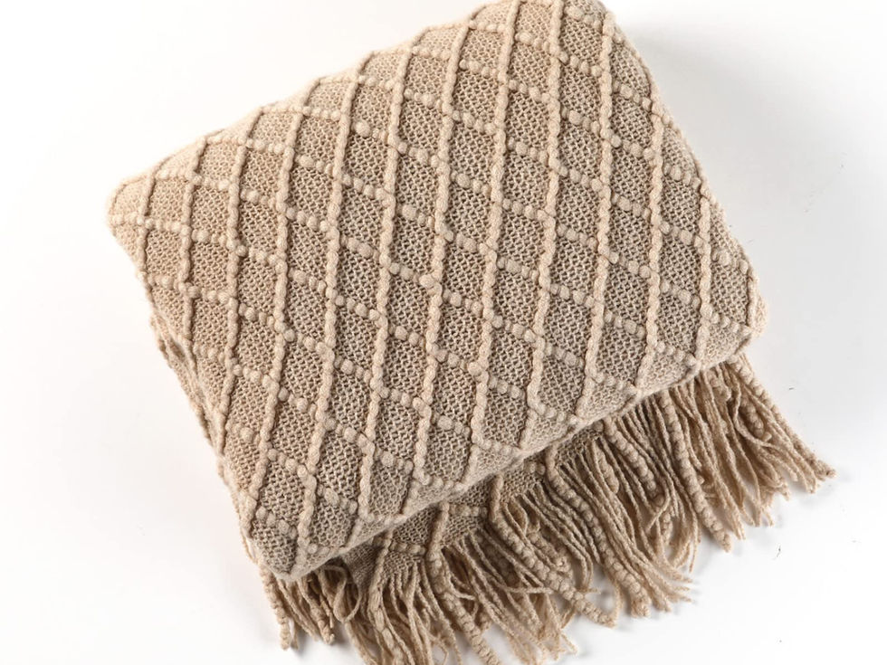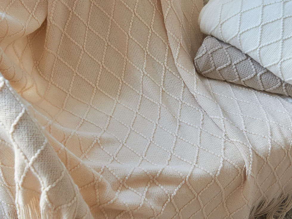 SOFT KNITTED BED RUNNER:Made of acrylic.This wool-like throw provides you with more flexibility & strength than wool.Keep warm in cold winter and provide sufficient warmth in air-conditioned room during summer THROW BLANKET WITH TASSEL:Solid color bed ruunner with decorative tassel,neat for the perfect finish that won't unravel in the wash.Vivid color as a decor piece, over a chair or couch, or keep it in the car in case you need it when traveling DECORATIVE BED SCARF:Use high speed weaving equipment, high knitting density, weaving beautiful modern geometric patterns, and the edge of the tassel, not only lightweight and warm, but also beautiful MULTI PURPOSE BED RUNNER:This tassel throw blanket is suitable for all indoor and outdoor like living room, bedroom, camping, hotel, park. You can use it as a shawl when you are in garden with families and friends. EASY TO CARE: Machine Washable. Machine wash cold inside a mesh laundry bag, tumble dry low or lay flat to dry. Avoid direct heat. No bleach
