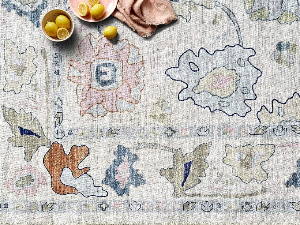 Cream Oushak Rug, Modern, Vintage, Turkish, Eclectic, Floral, Pastel,