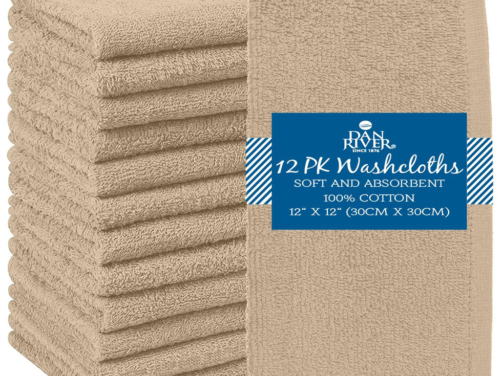DAN RIVER Washcloths - 12 Pack, 12x12 Inches, 400 GSM, Tan, 100%