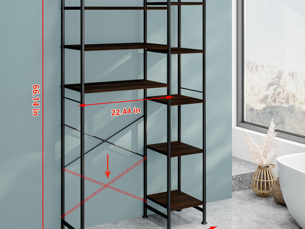 【Additional Storage Stand】:It features 1 open shelf with 5 levels that can hold basic bathroom storage needs.To hold everything from bath towels,toiletries,candles,aromas, plants etc. 【Sturdy Stable for Safe Use】:The 3-tier bathroom space saver is composed of high-quality wooden materials and sturdy frame, metal X-frame crossbars and anti-falling design, provide excellent stability and sturdiness, it makes ensure that it will not shake when used. Adjustable foot pads can keep stable and protect the ground from scratches. 【Easy to Assemble & Clean】:The package comes with all necessary hardware and illustrated instructions for bathroom toilet shelf. Follow the included manual for easy assembly. Over the toilet storage shelf with the waterproof painted surface ensures effortless cleaning. 【Functional Storage Rack】:The over toilet bathroom organizer is suitable for multiple scenes, living room, kitchen, entryway, laundry, balcony, porch, dormitory, hotel; Can be used as storage cabinet, kitchen rack, plant stand, laundry organizer, you can explore more ways to use it. 【High Quality After-Sales Service】: We have detailed installation instructions for each product package, and each accessory is labeled. You can assemble according to the instructions. If you have any problems during installation and use, you can contact us at any time.
