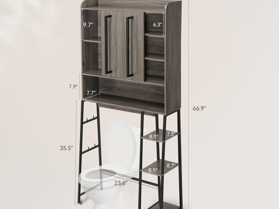 Bathroom Space Saver: This shelf organizer is designed to help you take advantage of the ample wall space over the toilet. It's a super practical and space-saving solution for small bathrooms. Size: 31.5"(L)*7.7"(W)*66.9"(H) Farmhouse Style: A rectangular design that combines practicality and aesthetics, made of advanced engineering wood, perfectly balancing modern practicality with warm farmhouse style, it is versatile and blends with various color palettes and aesthetics More Stable Structure: Made of particleboard and metal frame, with widened bottom design to ensure stability and prevent shaking. Anti-tip accessories are included to keep the bathroom organizer firmly in place and prevent accidental falls Adjustable Shelves: The interior features 3 adjustable shelves, providing ample storage space for items of different sizes; with a sliding door to protect your privacy; the bottom 3 shelves can be installed left or right according to your needs Easy to Assemble: Installing the bathroom toilet cabinet is a breeze, each panel is labeled and a step-by-step instruction manual is provided. If you have any questions or concerns, our customer service team is always here to help