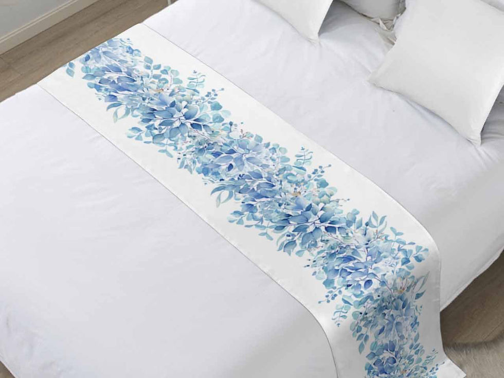 DecorLovee Blue Eucalyptus Leaves Bed Runners for King Size Bed,