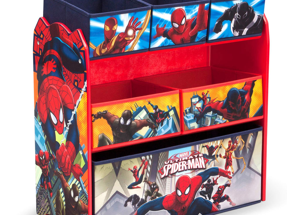 Make reading and cleaning up easy with the kid-sized book rack that allows children to easily view and select books, while the bright colors make it fun to put books back (Delta Children Sling Book Rack) Strong and sturdy wood construction of the book rack ensures years of lasting use for all your kids' books, magazines, folders or coloring books (Delta Children Sling Book Rack) Six uniquely sized fabric bins supported by a sturdy wood frame provides tons of storage for all kids' toys big and small (Delta Children Multi-Bin Toy Organizer) Colorful Spider-Man graphics and design provides stylish toy storage for any Spidey fan (Delta Children Multi-Bin Toy Organizer) Recommended use for ages 3+; Both products feature durable engineered wood construction built to last through years of use (Delta Children Sling Book Rack and Multi-Bin Toy Organizer)