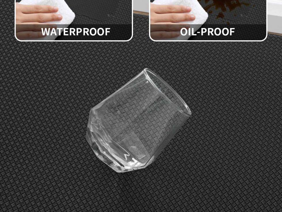 Anti Fatigue: Liner memory foam provides excellent cushioned support function. The ergonomic design takes the pressure off your feet and legs, so you can focus on creating meals, not aching joints Cushioned Comfort: Soft material encourages you to standing for extended periods much more comfortable. Please note the 0.4" dimensional thickness before ordering Waterproof and Stain Resistant: The water resistant surface ensures that cooking spills won't stain the mats.Keep liquids from soaking through, protecting the hardwood floor Easy to Clean: One quick swipe with a damp cloth erases spills, grease, or sauce stains—no scrubbing needed. Comes out new after every messy cooking spree Attractive Colors: Variety of colors to choose from to match your home decoration. Attractive addition to a laminate, hardwood, or tile floor.Make sure clean and dry before use