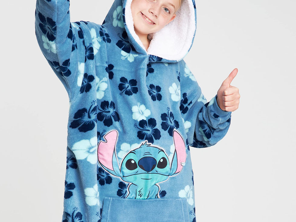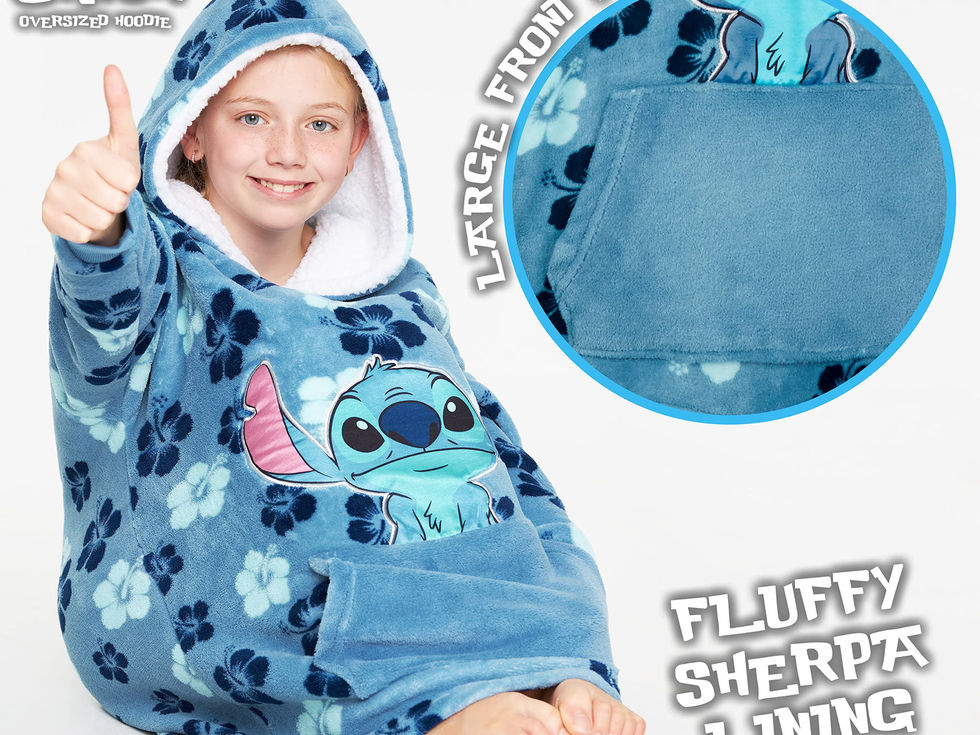 Disney fleece snuggle hoodie for kids and teens in a range of cute Disney character designs Officially licensed Disney merchandise Features a cosy sherpa lined hood, long cuffed sleeves, and a roomy kangaroo pocket. Made from high-quality fleece (100% polyester) Comes in 1 size fits all for kids and teens, see images for the measurement chart Looking for Disney gifts for girls or boys? This comfy blanket hoodie makes a great stocking filler for Christmas or gift for birthdays or special occasions