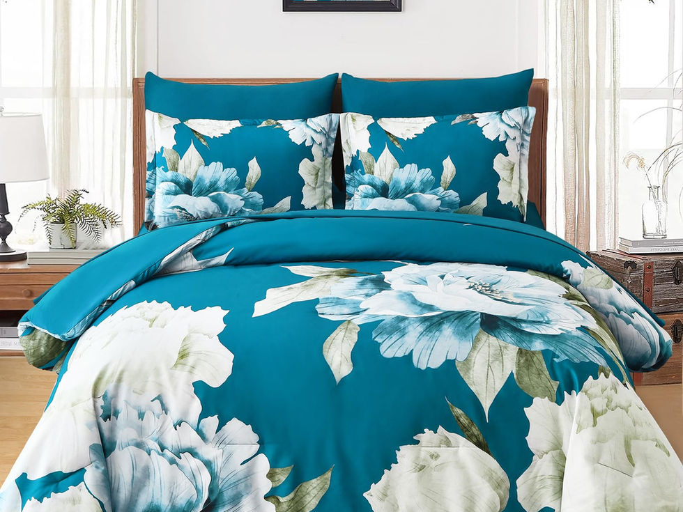 【Elegant Floral Design】This teal blue comforter features vivid botanical flowers and leaves to bring the breath of spring in any season. As a perfect decoration, it is suitable for your bedroom and guest room, adding an elegant and stylish atmosphere to your home. 【Soft and Cozy Material】The 7 Pieces comforter set king is made of 100% soft microfiber which is fluffy, breathable and lightweight. The soft and comfy sense of touch will ensure you a cozy sleep through every night. Moderate thickness, keep you warm and comfortable throughout the year. 【What You Can Get】7 pieces king bed in a bag set includes 1 floral comforter 90"x103", 1 flat sheet 102"x 108", 1 fitted sheet 78"x 80"x+14", 2 pillow shams 20" x 36" and 2 pillowcases 20"x 40". NOTE: Pillow insert is not included. 【Exquisite Craftsmanship】This floral king size comforter set uses whole piece of premium and well-distributed polyester as the inner filling which makes the comforter more soft and warm. The teal blue floral bedding set uses a excellent stitching technology to prevent the filling from shifting and clumping. 【Warm Tips】Machine washable in cold water, gentle cycle,tumble dry on low temperature. Please do not bleach. Because the king bedding sets 7 pieces is packaged in a vacuum bag, you can bake it in the sun for a few hours and tap it gently to make it fluffy again.