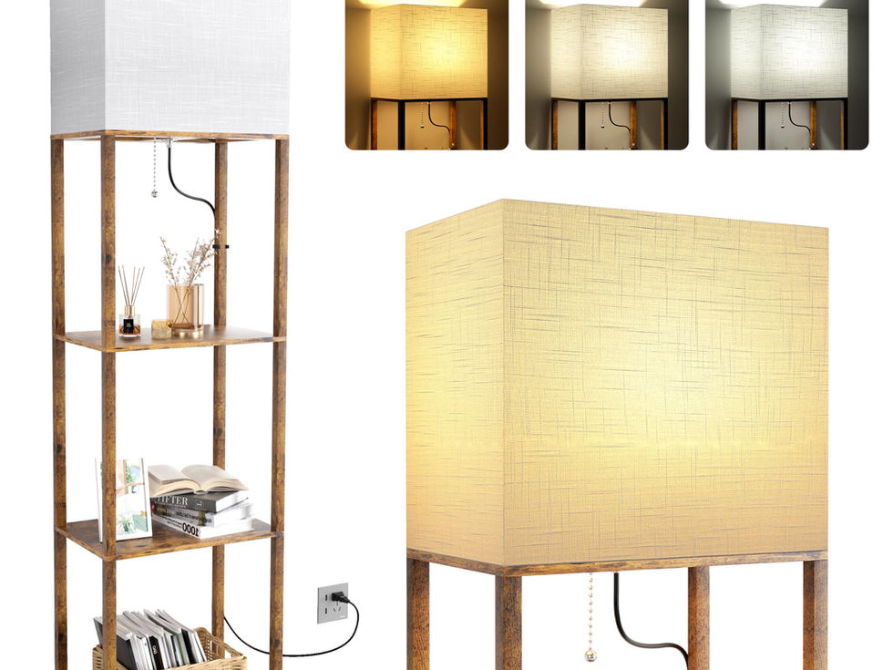 【Upgraded widened floor lamp】Widening Shelves Design, More Space for Display,This wide shelf floor lamp has more storage space than other floor lamps. Wider and more stable than other shelf floor lamp. The elegant large shelf floor lamp can add a lot of color to your home decoration. Perfect lampS for living room, bedroom, office, apartment or dorm provides plenty of space to display your items without taking up too much space. 【Includes Brighter 15W LED Bulb, 3 Color Temperatures】 The corner lamp comes with a 15W LED bulb, providing a bright and focused light source for any room. LED bulbs are known for their energy efficiency, helping to save on electricity bills while still delivering ample lighting 【Humanized Design Floor Lamp】200cm power cord, floor lamp stand can be moved arbitrarily, and is equipped with wire clamps to keep it tidy. Metal zipper switch, easy to control the shelf lamp. 【Minimalism Style Standing Lamp 】Contempopary wooden design, simple and elegant appearance, classic asian style, compatible with most decorations. Open whites lampshade, provide soft and natural luster for your room, creating a warm, fantastic and romantic atmosphere. You can read, chat, nap and meditate under the corner light stand. 【Multi-functional Floor Lamp for living room】Floor lamp shelves, an excellent holiday gift and birthday gift for mothers, fathers, wives, husbands, children, and friends. Floor lamp with shelves, very suitable for living room, bedroom, reading room, office, library, kitchen, coffee shop, hotel, restaurant, etc.