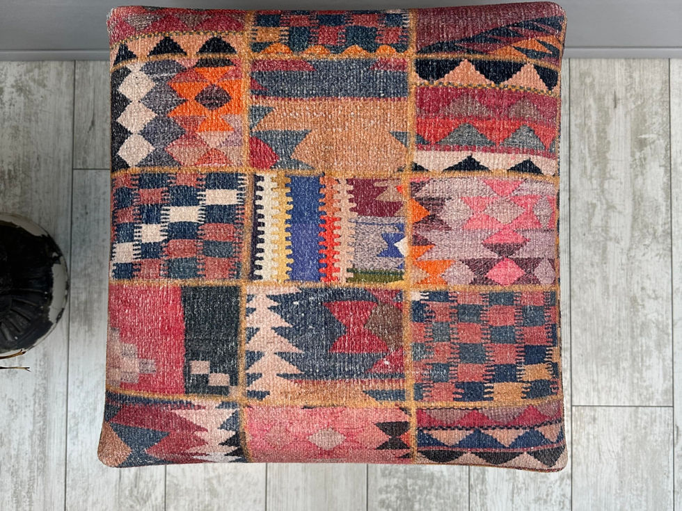*Here is a handmade upholstered Footstool Ottoman Bench with oriental rug patterns. This is a bench which all handmade with high quality pine tree and upholstered from digital printed chenille rug. This bench can carry up to 120 kg so it's in a perfect condition. It's a new handmade product in old oriental rug patterns. You can use this Bench in your Bedroom, entry, living room, mudroom ,dining room, Kitchen, saloon or hallway for your home decor. A perfect bohemian design piece for your home! *Size : 14"(H)x18"(W)x18"(L) (35x45x45cm) / 18"(H)x18"(W)x18"(L) (45x45x45cm) *Diameter (leg): 1" *Material : Wood, Digital Printed Chenille Rug, Beech Tree, High Density Sponge *Condition: New Handmade *Set up: The bench comes disassembled. The legs are located at the bottom of the workbench into zippers. The legs have screws for easy assembly. You can construct it by simply rotating it. *This bench carries up to 120 kg.