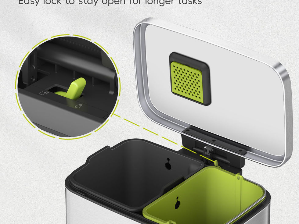 Premium Stainless Steel Design - This robust stainless steel trash can features a fingerprint-resistant finish, making it an ideal and stylish waste disposal solution for any home, office, or other environments Quiet and Smooth Operation - Equipped with a durable step pedal mechanism, this trash can is designed for years of reliable use. The bi-force damper ensures the lid opens and closes gently, eliminating slamming noises Convenient Stay-Open Feature - The user-friendly lid lock allows the lid to remain open for as long as needed, providing added convenience during disposal tasks Durable Construction for Longevity - Our high-quality stainless steel foot pedal is engineered to withstand over 200,000 uses, guaranteeing consistent and dependable performance for years Elevated Inner Liner with Handles - The EKO trash can includes a raised inner liner with easy-to-grip handles, making bag replacement quick and hassle-free