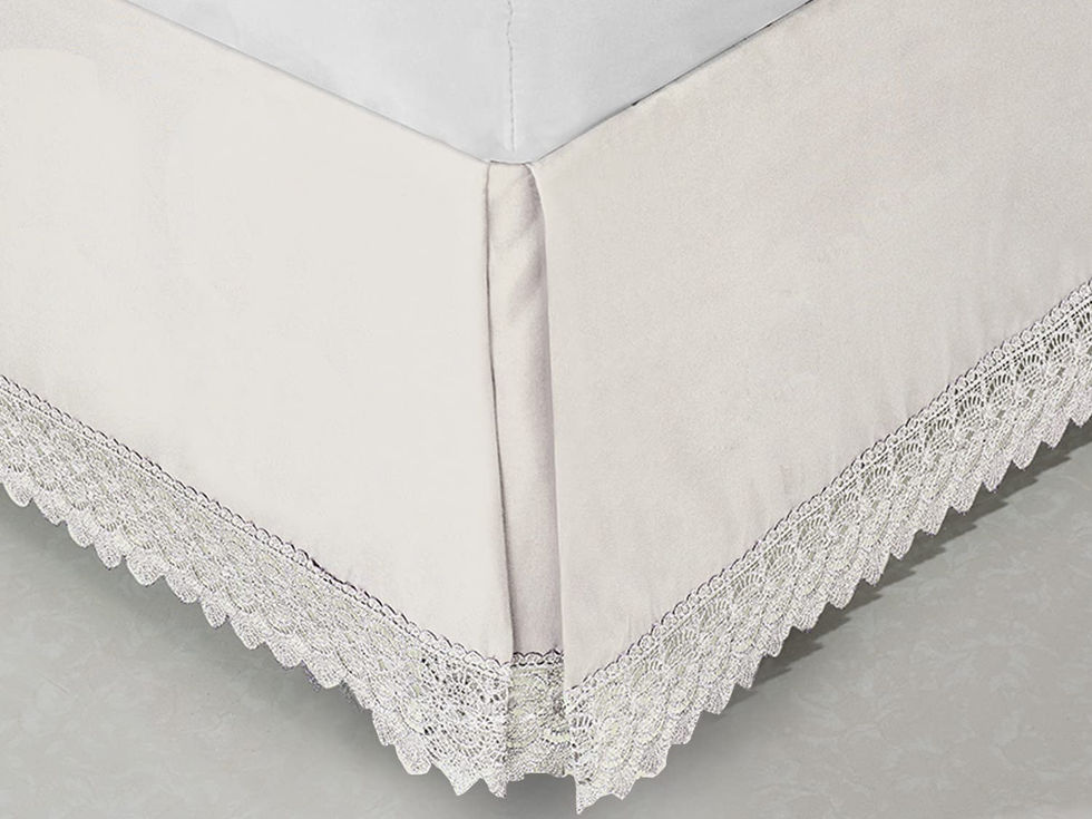 BED SKIRT SIZE- Our California King Lace bed skirt will measure 72” x 84” with a 15 inch long tailored drop for a sophisticated and vintage look. VINTAGE STYLE- Pamper yourself with a beautiful Elegant Comfort Lace Bed Skirt. Our timeless dust ruffle will bring a touch of elegance to your interior design. PREMIUM BUILD AND STAYS IN PLACE- Meant to be durable and only gets better after every use. Our wrinkle resistant fabric will ensure a No Iron finish, which will allow you to take your bed skirt from your dryer to your bed without any wrinkles. Place between your mattress and box spring to update your bedroom decor. Our bed skirts are perfect to hide your bed legs, bed frame, and under bed storage. EASY CARE- We suggest washing your bed skirt before the first use. Machine wash cold with like colors on a gentle cycle. Tumble dry low to avoid damage. OEKO-TEX 100 STANDARD CERTIFIED- All our products are STANDARD 100 by OEKO-TEX. According to the guidelines, these products are tested for harmful substances and produced in an environmentally friendly and socially responsible manner. Each fabric batch is also tested for various durability features such as no-pilling, low shrinkage, color fastness, etc. Then they are stitched, individually inspected to be defect free and finally, packed for sales.