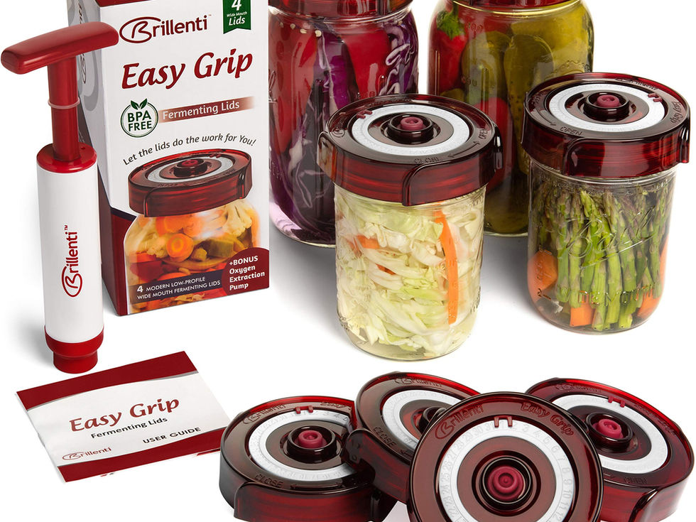 Hassle free fermenting lid valve: No manual burping is needed; our easy to use no burp waterless airlock lids for wide mouth mason jars automatically vent gases Comfortable easy grip tabs: No more sore hands as the four ergonomically designed tabs allow easy opening when your fermented vegetable is done Fermentation lid kit with oxygen extractor pump: Our fermentation jar lids are made of high quality durable BPA free plastic with automatic valve; giving you a perfect lacto ferment every time; perfect starter fermenting pickler kit Simple date tracker: Date setter ring is easy to set and remembers the date for you so no need for date stickers; get a probiotic rich culture with sauerkraut, cabbage or any fermented food or vegetable; fill your wide mouth mason jar then set the date Low profile waterless airlock fermentation lids: No Bulky water filled airlock so the jars fit easily into cupboards; fill a widemouth mason jar with vegetables and brine and screw on the lid; it’s that easy