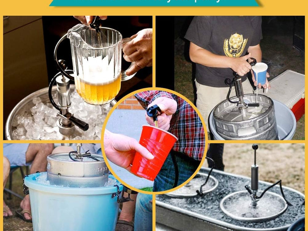 Build to Last Keg Pump & Faucet: FERRODAY 8" keg tap has a longer stroke than other 4" pump, which is more labor efficient, dispenses faster, and foams less! American complete keg tap kit. Heavy-duty 8” pump, D system forged brass coupler, High-quality PVC beer line, safe for beer. The strong picnic faucet has been tested thousands of times with stable performance and no leaks! Rustproof metal parts with classic modeling, and solid construction, this draft beer tap would last for years Sure No Leaks on Connections: This draft beer keg pump with an easy-to-lock lever handle and thickened internal gaskets to form an air-tight seal on the connection for no leaks. Specially designed check valve for efficient keg tapping (no backflow). Premium & wear-resistance O-rings are also durable for years. This is a real commercial standard party pump, draft beer dispenser Easy to Tap & Easy to Pump: Keg taps for beer with professionally designed sturdy pistons and premium O-rings for smooth pumps every time! Effortless keg tapping with this simple & smooth stroke pump! An ergonomic ball on the straight shaft of this 8” pump keg tap, easy to operate the keg pump. Just pump the keg when the flow is slow, and then the beer comes! Have fun with our Highly reliable keg tap Widely Used Keg Tap/ US D System: This party pump with a standard D coupler for Sankey kegs, for US Kegs. This keg tap is widely used, which works with all domestic D-type beer kegs, and also works with all family, colleagues, and friends gatherings! A portable keg tap is perfect for big parties and special events! Own a new keg tap this summer and tap a whole keg of cold beer effortlessly Easy to Use & After-Sales Service: 1. Check if your keg is a D-type keg; 2. Connect the keg pump to a keg, and lock down the handle; 3. Open the faucet right on and start to enjoy your beer; 4. Give the keg 1-2 pumps when the flow is getting slow. We are committed to offering you high-quality products as well as superior service. Please let us know if any problem with this beer keg tap, we will try our best to serve you. Provide technical support
